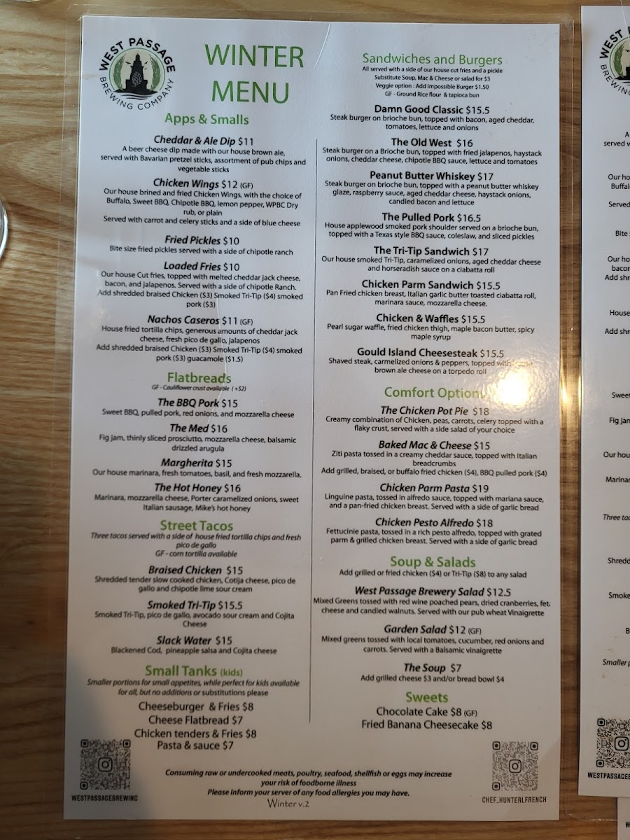 Among the highlights, the flatbreads stand out: try the Buffalo or Hot Honey for a kick of flavor. And for salad lovers, the West Passage Brewing Salad is a must. Dive into comforting options like the rich Baked Mac & Cheese, showcasing their commitment to hearty, satisfying meals.